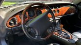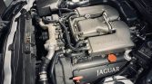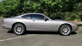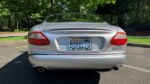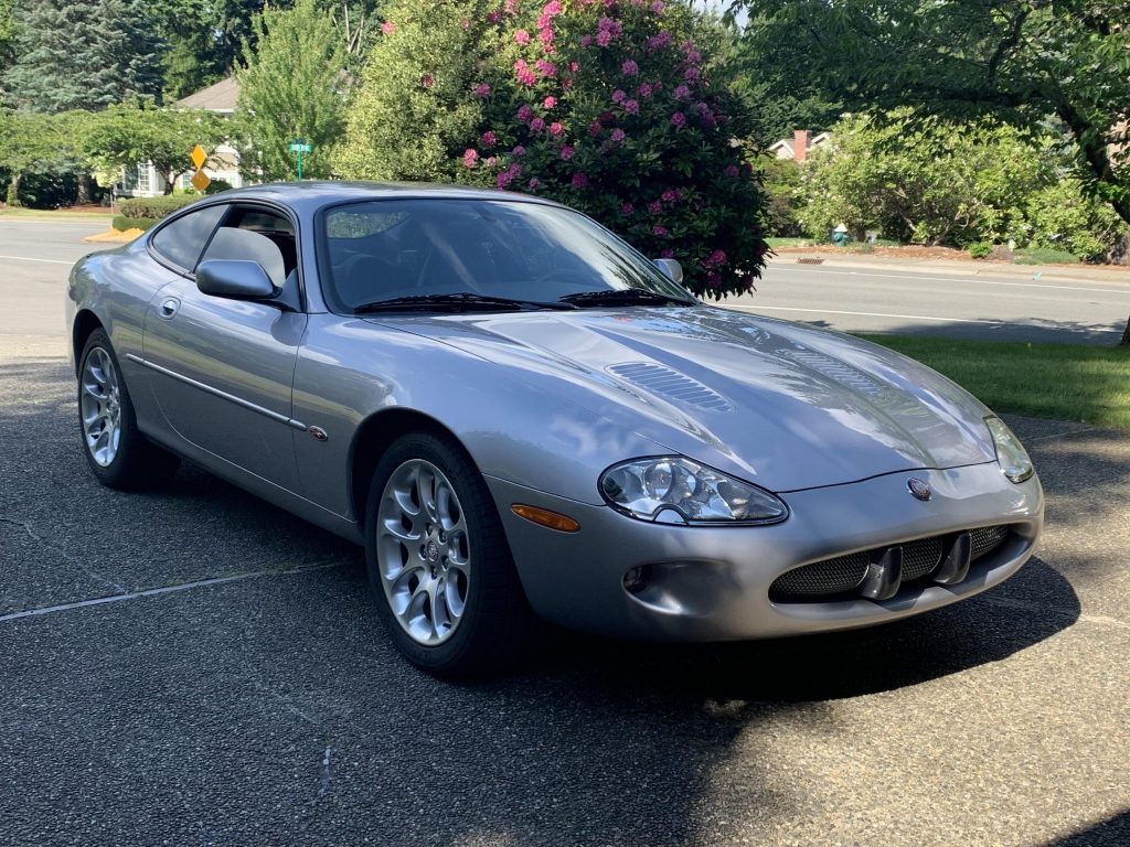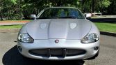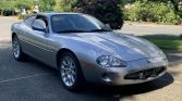 This 2000 Jaguar XKR coupe is finished in Platinum Metallic over Warm Charcoal leather, and power is provided by a supercharged 4.0-liter V8 paired with a five-speed automatic transmission. Equipment includes power-adjustable heated front seats, automatic climate control, Computer Active Technology Suspension, and a cassette stereo with a trunk-mounted CD changer.
