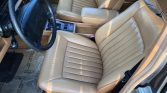 The Palomino interior features leather upholstery and color-matched carpets and trim. Amenities include an automatic climate control system, a Becker Grand Prix cassette stereo, power-adjustable front seats with memory, and a driver-side airbag. The air conditioning compressor was overhauled and refilled with R134a refrigerant in 2018, at which time the driver’s seat was replaced.