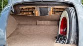 Red-painted wheels wear chrome hubcaps with color Cadillac crests, and they are mounted with 7.00–15 BFGoodrich Silvertown wide-whitewall tires. A matching spare wheel is stowed in the trunk. The car features an independent front suspension with coil springs as well as a semi-floating rear axle with semi-elliptical leaf springs and four-wheel hydraulic drum brakes.
