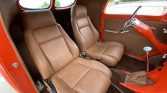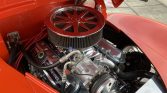 The steel-reinforced fiberglass body said to have been sourced from Antique & Collectible Autos is mounted to a boxed tube frame and has been mini-tubbed at the rear. House of Kolor Tangerine Pearl paint is aLented by polished door handles, lighting surrounds, and 1940 Willys-style front grilles. Additional exterior details include a split-rear window, a retractable antenna, and a single roof-mounted windshield wiper.