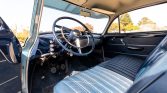 This 1950 Oldsmobile Rocket 88 club coupe is finished in blue over blue upholstery and is powered by a refurbished 324ci V8 from a 1955 Oldsmobile mated to a factory-optioned Cadillac-LaSalle three-speed manual transmission. The car spent time in Southern California and was repainted under previous ownership before the seller’s acquisition in 2016. Under current ownership, the factory 303ci V8 was replaced, a new exhaust system was installed, and the electrical system was converted to 12 volts.