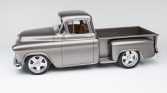 This 1955 GMC 100 pickup is a refurbished and modified example that was acquired by the current owner in October 2020. The truck is powered by a 502ci V8 with electronic fuel injection paired with a Hughes-built 700R4 four-speed automatic transmission and has been refinished in Magnum Moca Metallic over custom saddle brown leather. Features include a tailgate and front sheet metal from a 1957 Chevrolet, chrome 20″ Foose wheels, four-wheel power disc brakes, a 4-link rear…