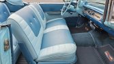 Steel 14″ steel wheels wear faux knock-off covers and are mounted with whitewall tires. The car has power steering, and braking is provided by front and rear drums.