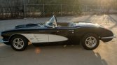 This 1959 Chevrolet Corvette was refurbished and modified during prior ownership, with work including refinishing the exterior in black with white coves as well as installation of a fuel-injected 5.7-liter L98 V8 and a six-speed manual transmission. Equipment includes power steering, a dual exhaust system, staggered-width 15″ American racing wheels, updated suspension components, and four-wheel disc brakes.