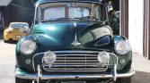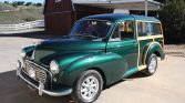 This 1960 Morris Minor Traveller was acquired by the owner in August 2016 and subsequently underwent a body off-frame refurbishment that included repainting the body, replacing the engine and transmission, reupholstering the interior, and rebuilding the suspension. The car is powered by a replacement 1,340cc inline-four paired with a five-speed Datsun 210 manual gearbox and is finished in green over a matching interior. Equipment includes 13″ Panasport aluminum wheels, Lucas driving lamps, wood paneling, lap belts, and…
