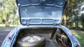 The black soft top features a plastic rear window, and a set of side curtains is included in the sale. The 15″ 60-spoke painted wire wheels feature chrome two-eared knock-off hubs and were installed with 165/80 Nexen SB-802 tires by Hendrix Wire Wheel of Greensboro, North Carolina in June 2008. A matching spare wheel with a Bridgestone tire is mounted in the trunk. Braking is handled by front discs and rear drums.