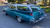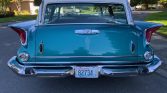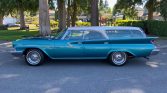 Originally finished in white, the car is said to have been repainted in teal blue and white during a refurbishment under current ownership. Features include angled quad headlamps, chrome bumpers, finned quarter panels, a rear tailgate with power window, a fender-mounted mirror, reverse lamps, and dual-outlet exhaust.