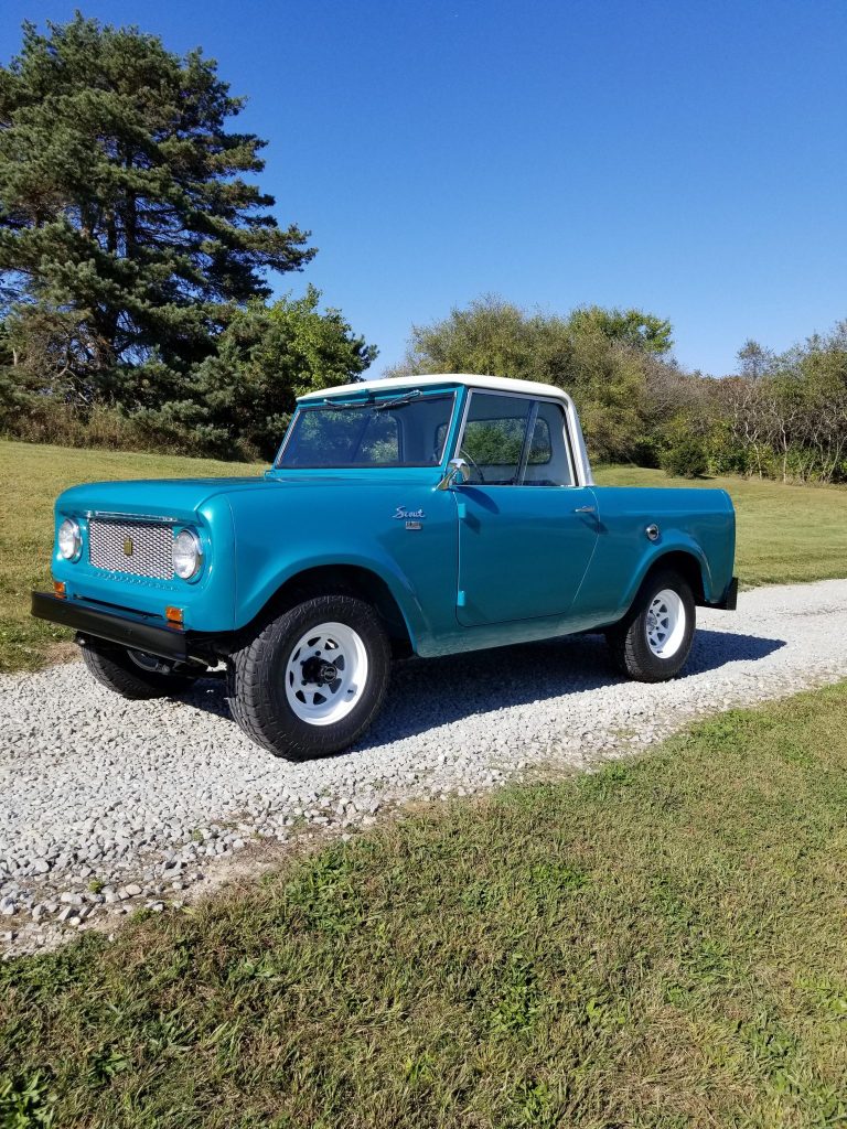…This 1961 International Harvester Scout 80 is finished in blue with a removable white hardtop over a black interior and is powered by a 152ci inline-four mated to a three-speed manual transmission and a twin-stick dual-range transfer case. It was originally delivered to Spokane, Washington and underwent a cosmetic and mechanical refurbishment prior to the seller’s acquisition earlier this year. Equipment includes a Warn overdrive unit, PerTronix ignition, white-finished 15” wagon wheels, and aftermarket gauges.