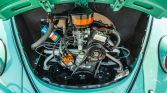 The 1.2-liter flat-four sends power to the rear wheels through a four-speed manual transaxle. Work completed during the refurbishment is said to have included a 12-volt conversion and replacing the spark plugs, ignition wires, distributor, wiring harness, carburetor, fuel pump, and fuel lines.