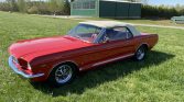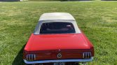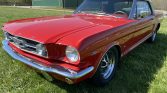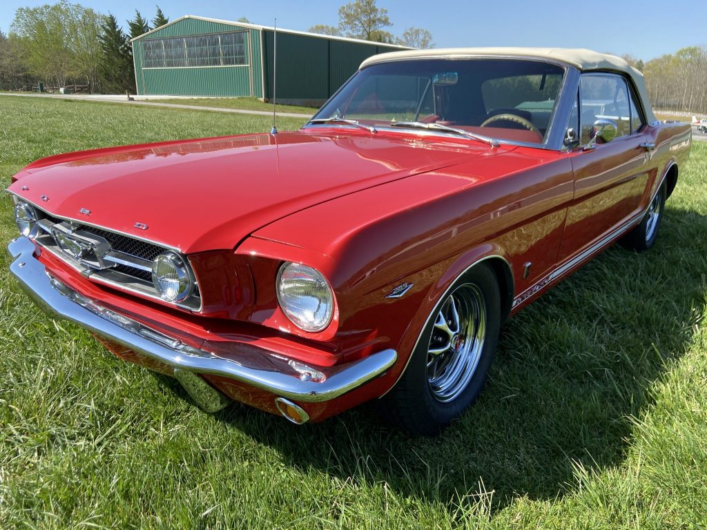 This 1965 Ford Mustang convertible is said to have been purchased by the current owner in 2017 after decades of storage, and subsequent refurbishment work completed in 2019 reportedly included refinishing the exterior in red as well as refreshing the interior with Deluxe-style red upholstery and trim. Power comes from a 289ci V8 paired with a four-speed manual transmission, and additional equipment includes a white soft top, a Custom Autosound stereo, 14″ styled steel wheels, a front disc brake conversion, and GT-style fog lights, fender badges, and rocker stripes.