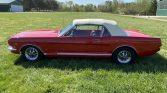 This 1965 Ford Mustang convertible is said to have been purchased by the current owner in 2017 after decades of storage, and subsequent refurbishment work completed in 2019 reportedly included refinishing the exterior in red as well as refreshing the interior with Deluxe-style red upholstery and trim. Power comes from a 289ci V8 paired with a four-speed manual transmission, and additional equipment includes a white soft top, a Custom Autosound stereo, 14″ styled steel wheels, a front…