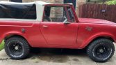 This 1965 International Harvester Scout 80 is finished in red over beige upholstery, and the 152ci inline-four, three-speed manual transmission, and dual-range transfer case are said to have been overhauled under current ownership. Features include a white soft top, 15″ wheels with 31″ tires, a Painless Wiring harness, and a locking center console with a Clarion stereo. The truck has been stored for the better part of a decade, and the fuel system, suspension, brakes, and other areas will require attention before it can be driven.