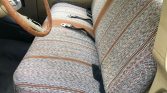 Painted steel wheels wear chrome hubcaps and rings and are wrapped in Hankook Dynapro HT tires. The truck has reportedly been lowered by 3″ and is equipped with aftermarket shocks and front disc brakes reportedly sourced from a 1978 Ford F-150.