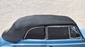 Black 15″ steel wheels feature chrome hubcaps and are mounted with Coker whitewall tires all around. A black padded convertible top is fitted along with replacement hardware and a powder-coated frame.