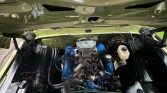 White-finished 17″ steel wheels are mounted with 285/70 Falken Wildpeak M/T tires. As part of the build, the frame was modified to accommodate a custom four-link front suspension setup and front and rear springs that were sourced from a late-model F-250. A brake system sourced from a late-model F-250 was also installed along with a dual-shock steering stabilizer and Rough Country shocks. The truck is further equipped with manually locking front hubs.
