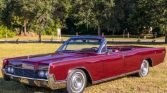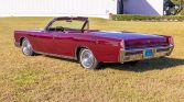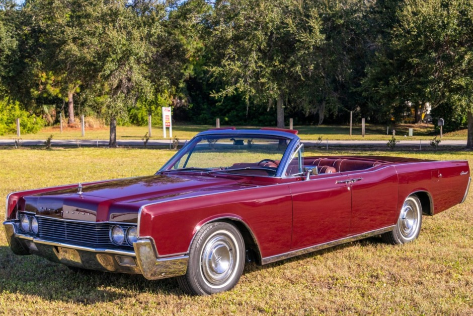 …This 1967 Lincoln Continental Convertible is powered by a 462ci V8 paired with a three-speed automatic transmission and is finished in maroon paint over matching leather upholstery. Features include a white soft top, power windows, mirrors and front seats, reverse-opening rear doors, chrome bumpers, and a factory radio.