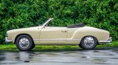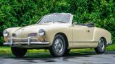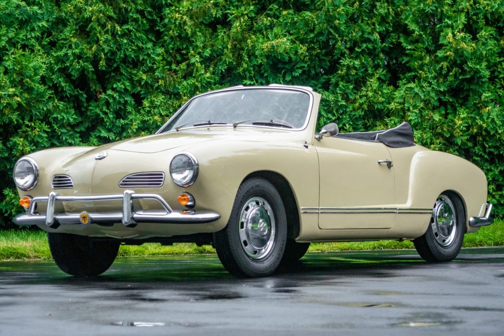 This 1967 Volkswagen Karmann Ghia convertible was purchased new by an Army Lieutenant on August 25, 1967 from Crater Motor Company in Petersburg, Virginia and reportedly resided with the second owner for 45 years prior to the seller’s purchase in 2014. The car is finished in Castilian Yellow over a black interior, and power is from a 1,500cc flat-four paired with a four-speed manual transaxle. Equipment includes a black soft top, 15″ wheels, chrome bumpers with overriders,…