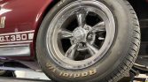 This 1968 Ford Mustang Fastback was modified in the style of a GT350 in the early 2000s and underwent a mechanical refreshment in 2018. Work included rebuilding the four-speed manual transmission, replacing the clutch assembly, flywheel, and steering column, performing electrical repairs, and installing a power-assisted rack and pinion steering gear along with Hotchkis suspension components. The car is finished in burgundy with white stripes over a black interior, and power is provided by a 302ci V8 that has been modified with an Edelbrock intake manifold, tubular headers, and a dual exhaust system with Flowmaster mufflers. Additional modifications include polished Torq Thrust wheels, ProCar bucket seats, a roll bar, and a Hurst shifter.
