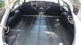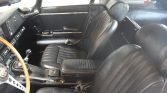 The wood-rimmed steering wheel frames Smiths instrumentation consisting of a 160-mph speedometer and a tachometer with a 5k-rpm redline. An ammeter, analog clock, and auxiliary gauges displaying coolant temperature, oil pressure, and fuel level are centrally housed in the dashboard. 60k miles are shown on the five-digit odometer.
