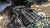 The 4.2-liter DOHC inline-six was fitted with triple SU carburetors under previous ownership, and they were overhauled during the refurbishment. Additional work performed included a replacement thermostat, hoses, battery, ignition coil, spark plugs, air filter seals, and an electronic distributor and ignition, along with an overhaul of the cooling system that included a radiator recore and rebuild.