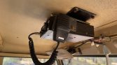 The 15″ steel wheels are mounted with older mismatched tires, and a spare is fitted to a swing-out carrier at the rear.