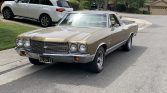This 1970 Chevrolet El Camino was sold new by Courtesy Chevrolet of San Jose, California, and was acquired by the seller’s father-in-law in 1972. The car was stored from the early 1980s until 2006, when it is said to have been refurbished with overhauls of its numbers-matching 350ci V8, three-speed automatic transmission, carburetor, and brakes. Suspension components were also replaced, the fuel system cleaned, the vinyl roof replaced, and a color-coordinated fiberglass bed cover installed. Approximately 3k…