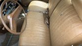 The car came fitted with a bench seat trimmed in Saddle vinyl from the factory, and the seat cover reportedly was replaced around 2006. The air conditioning system has been converted to use R134a refrigerant, and a rebuilt compressor was installed in July 2021 along with a new receiver drier. An aftermarket AM/FM stereo drives speakers in the modified kick panels and behind the seat.