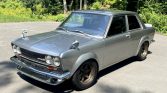 This 1970 Datsun 510 was acquired in 2018 by the seller and has since been modified with a 2.0-liter SR20DET fitted with a Garrett turbocharger, a CX Racing intercooler, and HKS camshafts. Power is sent to the rear wheels through a five-speed manual transmission with a Nismo twin-disc clutch and a limited-slip differential, and additional modifications include a repaint in Titanium Metallic and matching fender flares, along with 15″ Volk Racing wheels, Wilwood disc brakes, Techno Toy…