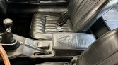 The cabin features bucket seats upholstered in Black leather along with a color-coordinated center console, door panels, and carpets. Interior appointments include an AM/FM radio, a locking glovebox, and a heater. Work performed in 2024 is said to have included cleaning the fuse block and headlight switch and replacing the clutch pedal spring, four-way flasher relay, and seatbelt emblems.