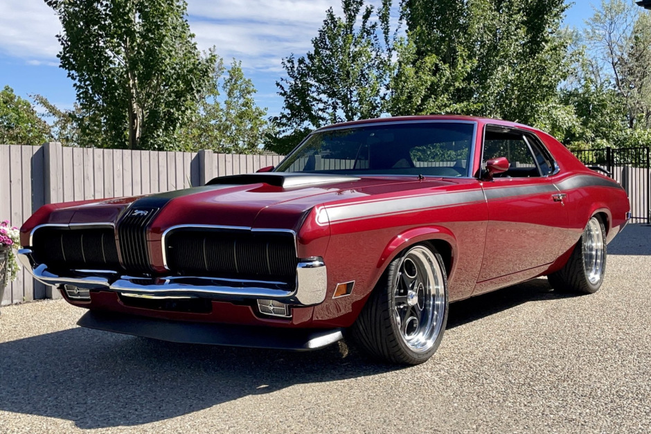 This 1970 Mercury Cougar was acquired by the seller in 1985 and underwent a refurbishment and modifications at Kreations Autobody of Rio Dell, California, from 2008 to 2010. The car was refinished in red over a black interior and repowered with a fuel-injected Roush 427 IR V8 crate engine paired with a Tremec five-speed manual transmission. Additional modifications include tubular front suspension, a triangulated four-bar rear end, adjustable coilovers, Wilwood four-wheel disc brakes, rack-and-pinion steering, staggered 18″…