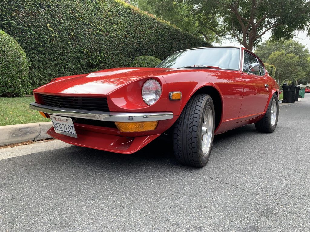 This 1972 Datsun 240Z was purchased by its current owner in 1984, and it was refurbished and modified between 2002-2007. Work included refinishing the exterior in red, reupholstering the black interior, and installation of a rebuilt 2.8-liter inline-six sourced from a 280Z, a 280ZX Turbo-sourced five-speed manual transmission, and an R200 limited-slip differential equipped with Quaife components. Additional equipment installed during the refurbishment include a Sony CD stereo, a refreshed electrical system, lowering springs, European-specification headlights, front and rear strut tower braces, and a 280ZX Turbo-specification clutch and four-piston front brake calipers.