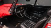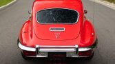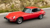 This 1973 Jaguar E-Type Series III 2+2 is powered by a 5.3-liter V12 linked with a three-speed automatic transmission and a limited-slip differential. The car was restored circa 2004 and is finished in Signal Red over black leather. Features include four-wheel disc brakes, power steering, 15” knock-off wire wheels, quadruple carburetors, a leather-wrapped steering wheel, and an aftermarket CD player.