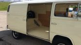 The bus has been refinished in white (L90D) with the roof and bumpers finished in a lighter shade, according to the seller. The rocker panels, weatherstripping, and windshield were replaced at the same time along with the mirrors and door handles.