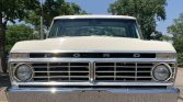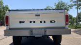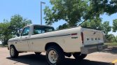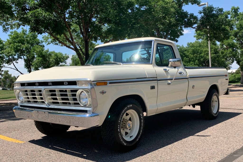 The truck is said to have been refinished in Wimbledon White under previous ownership. Features include a tonneau cover, a chrome front bumper, a rear step bumper, chrome and black molding, a “Ford” decal on the rear window, and a decorative pinstripe on the tailgate.