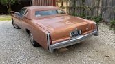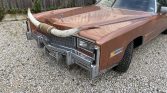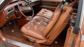 The car is finished in Frost Orange Firemist (YL2) and is equipped with a matching vinyl landau roof along with an American Sunroof Corporation (ASC) power sunroof conversion. The bumper-filler panels were previously replaced and painted, and additional details include opera lamps that are unique to the Biarritz trim level, cornering lights, and a longhorn hood ornament.