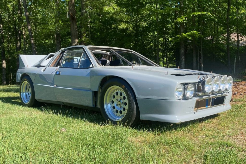This Lancia 037 tribute is a partially-completed project that began life as a 1977 Lancia Scorpion and was acquired by the current owner in 2017. It has since been modified with Carteroni bodywork mounted over a chromoly tube frame, along with a Honda K24 inline-four fitted with a Borg Warner turbocharger, a Mishimoto intercooler, and Dailey Engineering dry sump oil system. Shifting is through a Fortin Racing five-speed sequential manual gearbox, and additional equipment includes Wilwood brakes, Braid three-piece wheels, adjustable Penske Racing shocks with Eibach springs, front-mounted rally lights, OMP HTE-R racing seats, and an OMP steering wheel.
