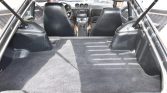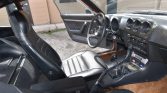 The cabin is upholstered in black vinyl with brown carpets. Amenities include reclining bucket seats, Z-logo floor mats, an aftermarket Pioneer CD player, a Clarion graphic equalizer, and a rear window defroster.