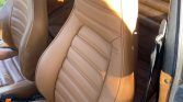 The cabin is trimmed with tan upholstery over color-keyed carpets, and a Panasonic stereo is linked with Boston Acoustics speakers. The driver’s seat is recovered, and the seller reports that removed upholstery is included in the sale.