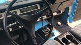 A three-spoke steering wheel sits ahead of a turned metal dash panel housing a horizontal 100-mph speedometer and auxiliary gauges. The five-digit odometer shows 85k miles.