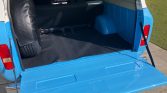 The truck underwent rust repair and was fitted with replacement floor pans prior to a bare-metal repaint in its current shade of Lexington Blue during prior ownership. A removable white hardtop is installed, and work following the seller’s acquisition included the application of white Rallye-style side stripes as well as replacement of the front grille, bumpers, headlights and bezels, and marker lenses and housings.