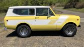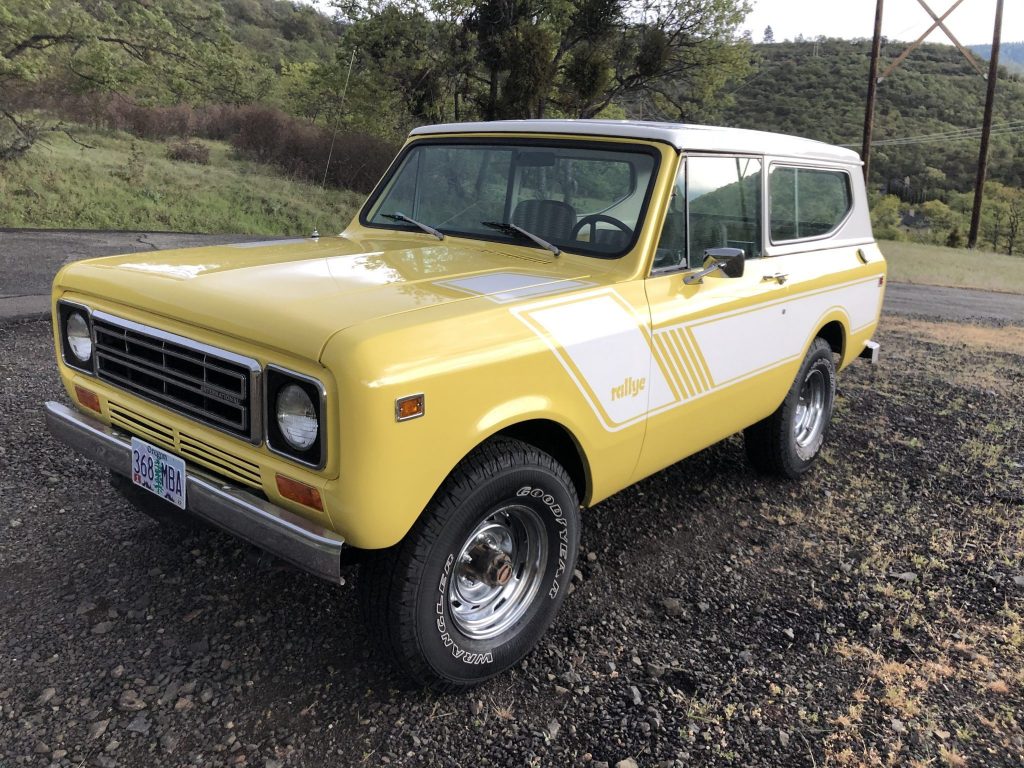 This 1979 International Harvester Scout II was refinished in Sunburst Yellow with a white removable hardtop and Rallye-style graphics. Additional work included refreshing the interior with green cloth and vinyl upholstery, installing 15″ Rallye wheels with 31″ tires, and replacing the carpets, headliner, weatherstripping, windshield, and seals. The truck is powered by a 345ci V8 paired with a four-speed manual transmission and a dual-range transfer case. Features include locking front hubs, an AM/FM stereo, and power steering.
