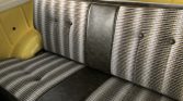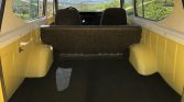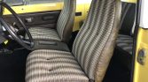 The seats have been reupholstered in green vinyl with patterned tweed cloth seating surfaces to match the original interior scheme Scouts had in this era. The refurbishment also included installing sound dampening material on the roof and floor, installing aftermarket speakers in the door panels, and replacing the headliner, rearview mirror, and carpets.
