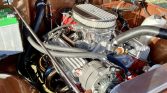The 350ci Chevrolet V8 was installed by the seller and is fitted with an Edelbrock intake manifold, a Holley carburetor, stainless steel headers, a Flowmaster exhaust, HEI ignition, Advance Adapters engine mounts, and an aluminum radiator. Belts and hoses are said to have been replaced during the refurbishment, and a Lokar throttle cable and kickdown cable have also been installed.
