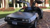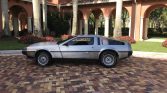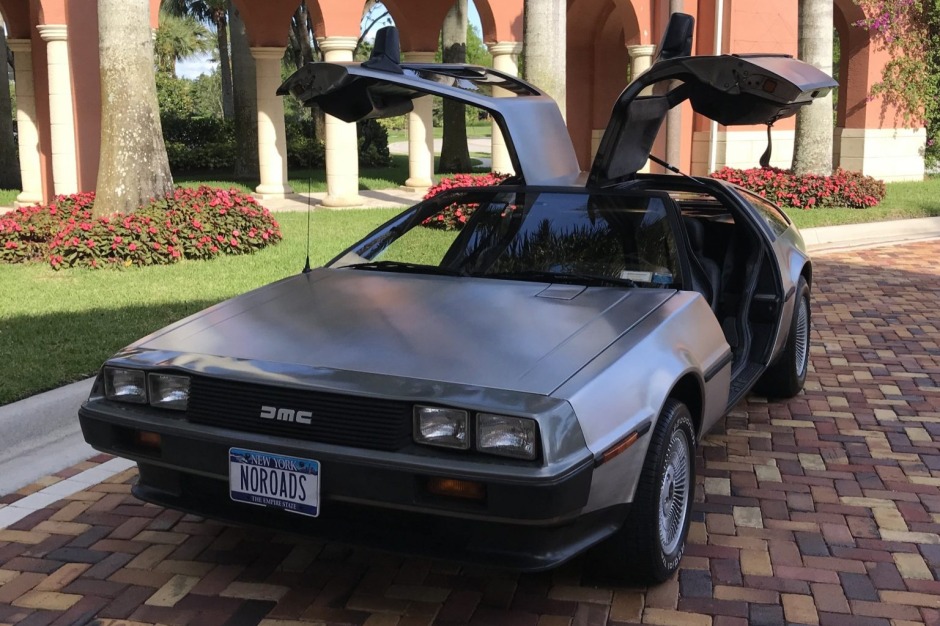 This 1981 DeLorean DMC-12 features brushed stainless-steel bodywork over black leather upholstery and is powered by a 2.85-liter V6 paired with a three-speed automatic transaxle. Equipment includes gullwing doors, a louvered rear window cover, staggered-diameter alloy wheels, air conditioning, and a cassette stereo. The car was delivered new to Import Cars of Greenwich, Connecticut, and has resided in New York and Florida after it was acquired by the seller in December 1998.