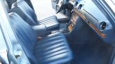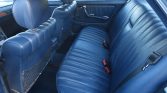 The cabin features blue MB-Tex upholstery with matching carpeting and Zebrano wood trim on the dashboard and center stack. Amenities include automatic climate control, a factory Becker Europa cassette stereo, and power windows. The air conditioning was recharged in preparation for the sale.