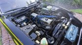 The car is finished in Thunder Black Metallic with gold stripes and emblems. Additional exterior details include a NACA duct on the hood as well as a rear window wiper, removable T-top roof panels, power-adjustable side mirrors, rear window louvers, and a power antenna.