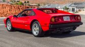 This 1984 Ferrari 308 GTS Quattrovalvole is powered by a fuel-injected 2.9-liter V8 paired with a five-speed manual transaxle and is finished in Rosso Corsa over tan leather with black piping. Equipment includes 16″ Campagnolo alloy wheels, a removable roof panel, a Pioneer head unit, air conditioning, and a wood-rimmed Luisi steering wheel.
