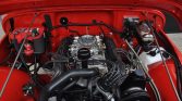The 304ci AMC V8 was reportedly installed under previous ownership and features an Edelbrock Performer intake manifold, four-barrel carburetor, and air cleaner along with cast-aluminum valve covers, a new coil, replacement spark plug wires, an MSD Street Fire ignition controller, an aluminum radiator, Patriot headers, and a dual exhaust system with Flowmaster mufflers. A replacement fuel pump was installed in July 2021.