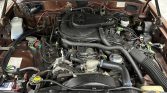 The 4.2-liter 2F inline-six is equipped with a single carburetor and was factory rated at 135 horsepower and 210 lb-ft of torque. An aftermarket radiator has been fitted. A rebuilt smog pump was installed in September 2020, and a February 2024 date sticker can be seen on the battery. An oil change was performed in preparation for the sale.