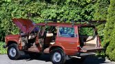 Power is delivered to the rear or all four wheels through a four-speed manual transmission and a two-speed transfer case. A Man-A-Fre transmission/transfer case oil bypass kit is said to have been added. The muffler was replaced in 2020. The front axle seals and an axle are noted to have been replaced in 2021, and a coating was applied to the underside at that time.